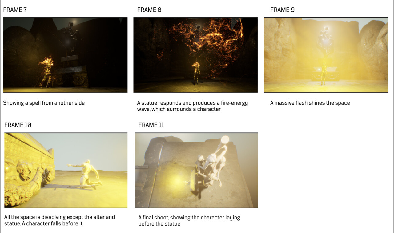 Next step I created rays of energy, using a fbx mesh and two kinds of materials: pseudo fluid and starlike materials. Real Niagara fluids or VBDs are not necessary for this effect and consume enormous resources. I do like Houdini Pyro for making high quality TextureSheets. However in this project I decided to test FluidNinja tool, which has Houdini Pyro templates and allows to create animated sheets and ready to use materials inside Unreal. I was very satisfied by the results.